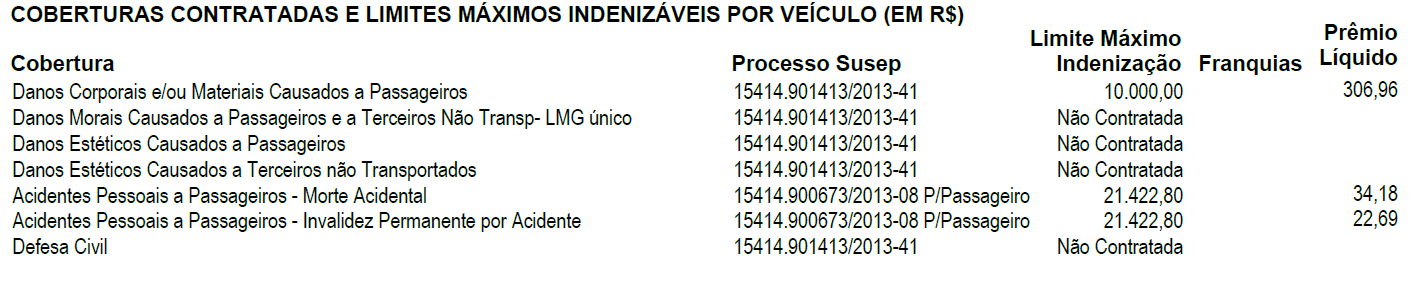 Para as viagens intermunicipais em BA e ES, o seguro oferece as seguintes coberturas: